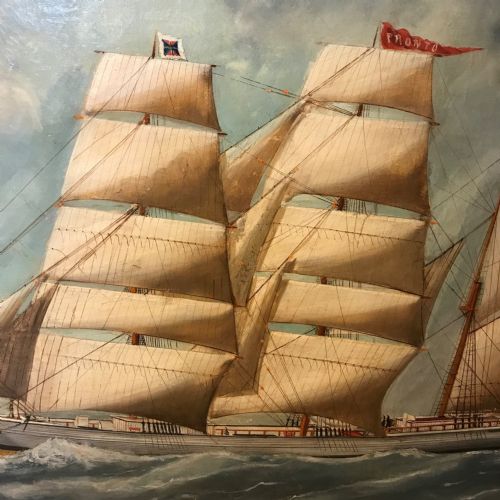 Large Late 19th Century Oil Painting on Canvas of The Three Masted Vessel named PRONTO.