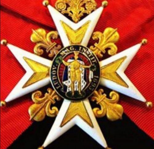 He proudly wears with distinction the Military Order of St.Louis which is suspended from a crimson red heart fastened with honour to his chest.