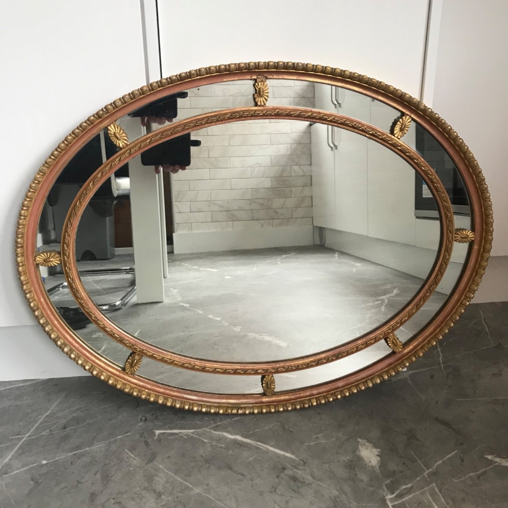 oval mirror late victorian decorative sectional gilt gesso frame with patera flower rosettes and gadrooned edging