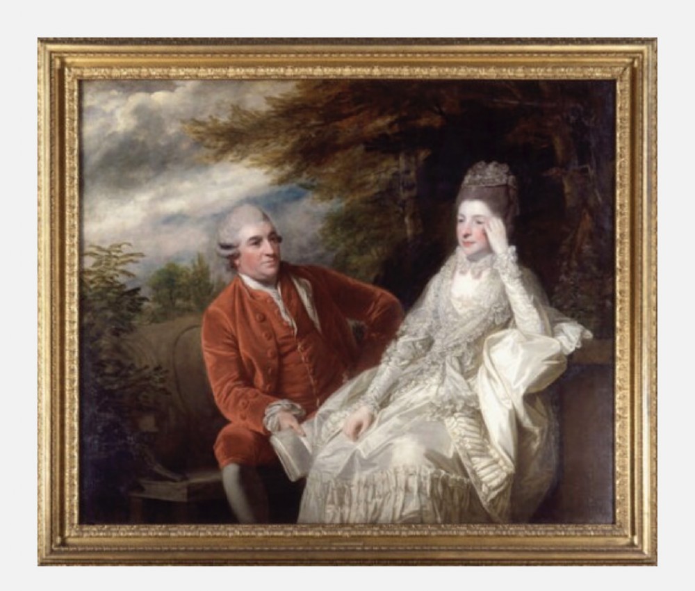 ABOUT THE SITTERS David Garrick and Eva Maria Garrick (née Veigel), richly dressed, and conversing in wooded landscape. The painting follows the fashionable convention of the conversation piece, a (usually) small-scale portrait showing two or more people, often out of doors,with the smaller versions being about the same size as a half-length portrait but in horizontal or ''landscape'' format.