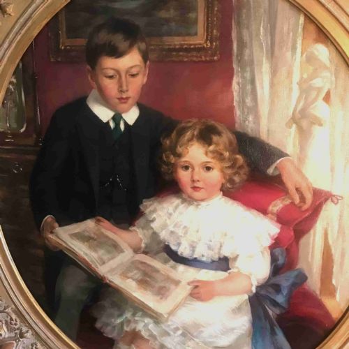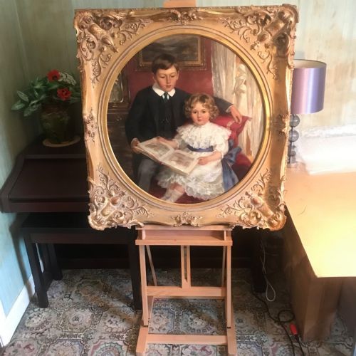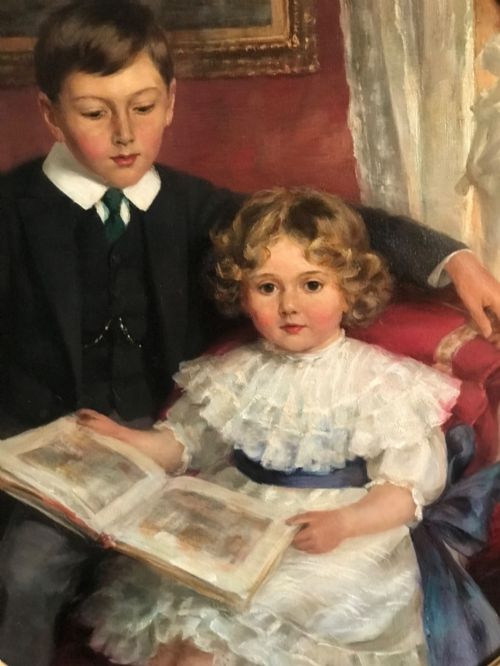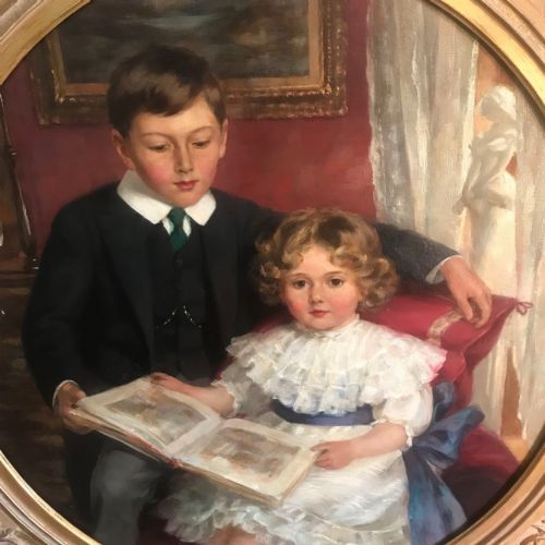 william and constance mair by arthur percy dixon edwardian oil portrait painting of children