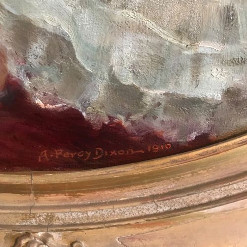 A charming early circa 1910 oil portrait on canvas in an oval mount depicting William and Constance Mair by Arthur Percy Dixon (act. 1884-1917).