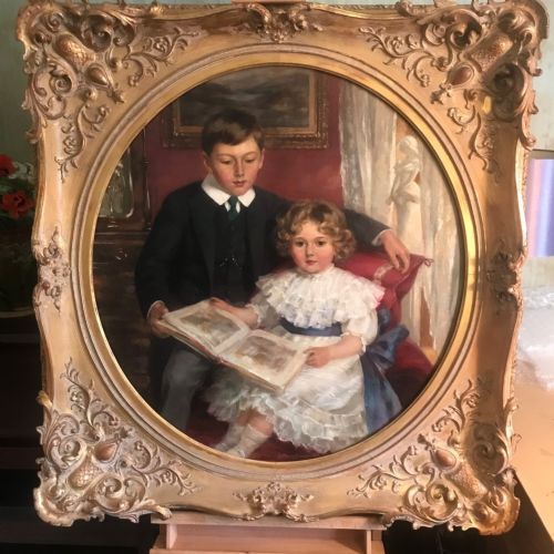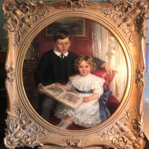 William And Constance Mair By Arthur Percy Dixon Edwardian Oil Portrait Painting Of Children