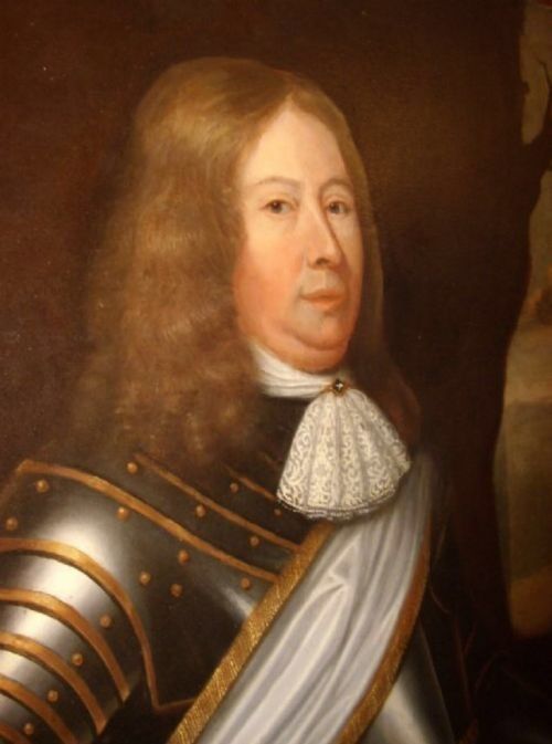 SITTER DAVID 2ND EART WEMYSS wears his full suit of gleaming armour almost tailored to his substantial size,a weighty looking gentleman of distinction and aristocratic social standing.