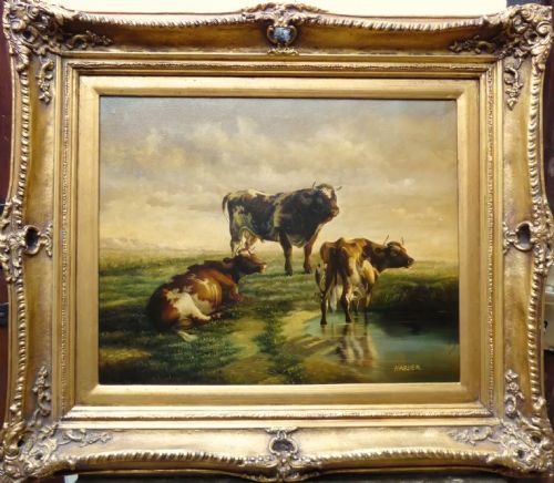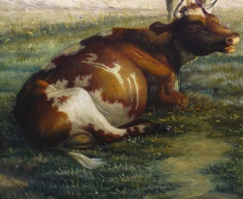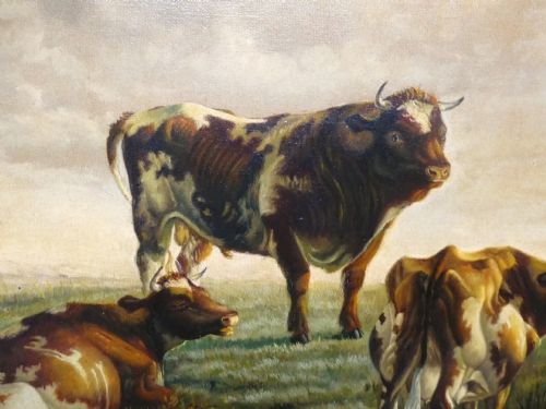 Cattle Painting By Heinrich Harder 1858-1935 German Oil Portrait Of A Bull Resting 19th Cattle Rural Landscapes