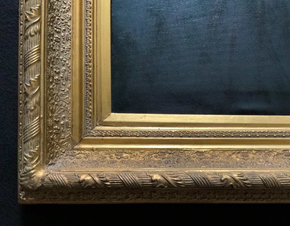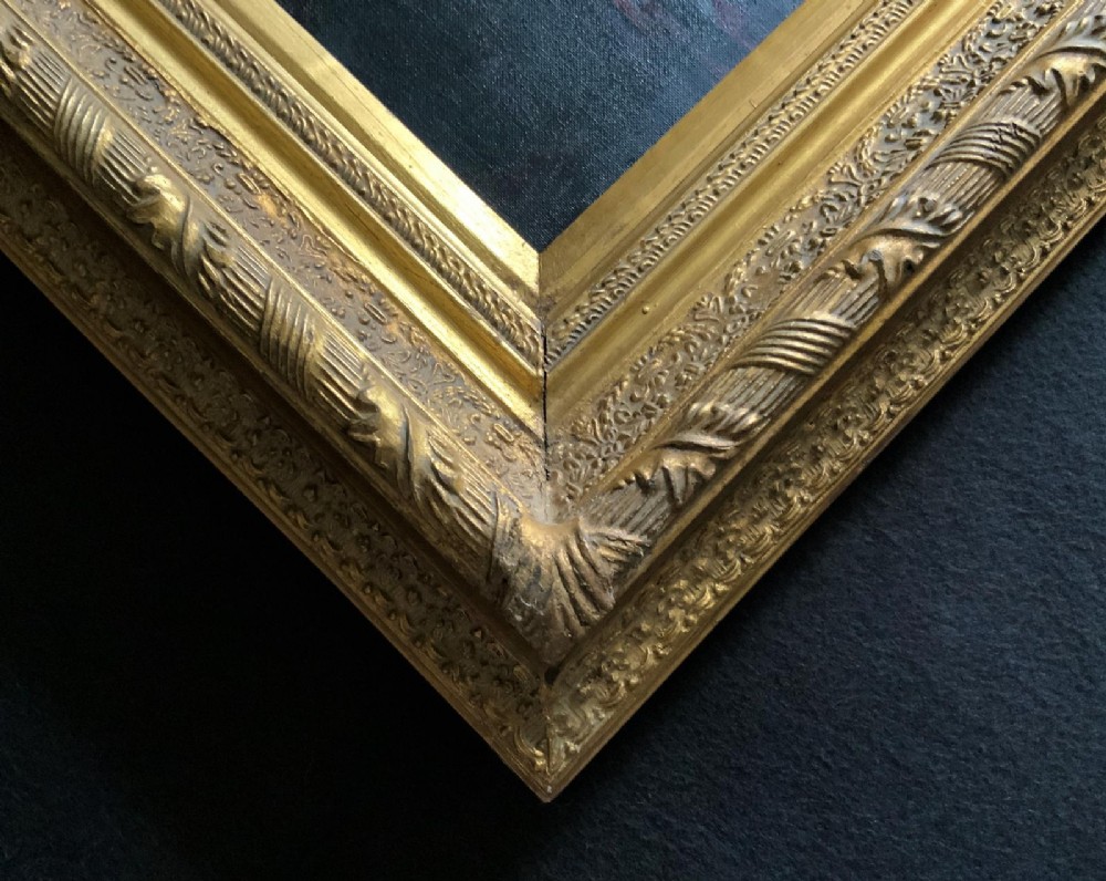 The plaster moulded decorative swept gilt frame is perfect and enhances the work immensely.