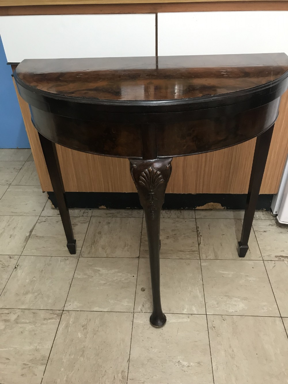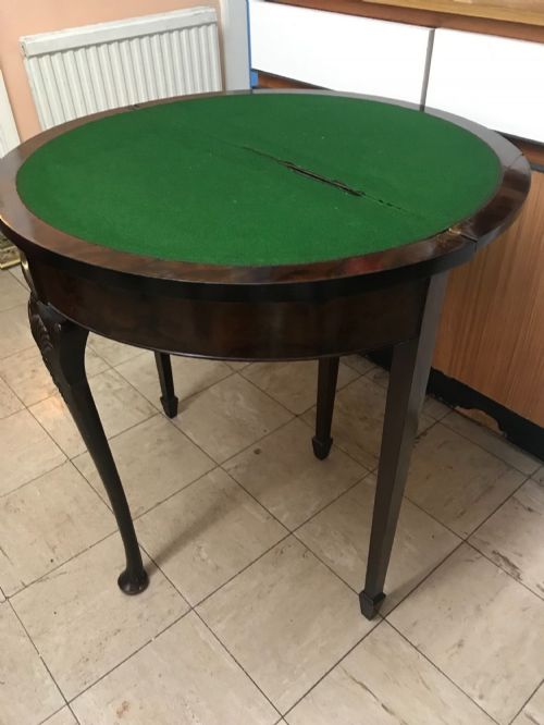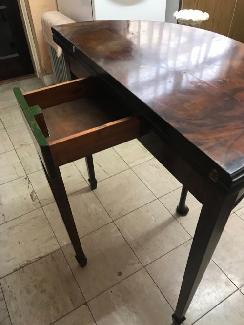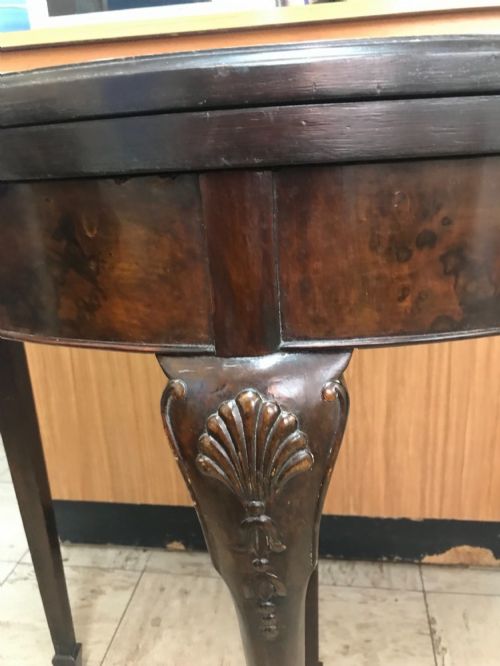 Folding Card Table With Games Draw Walnut Veneer 19th Furniture Demi Lune Side Tables