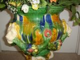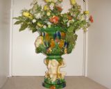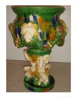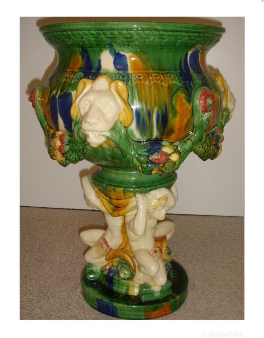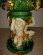 Majolica Style Porcelain Planter With Figures 22 Inches High